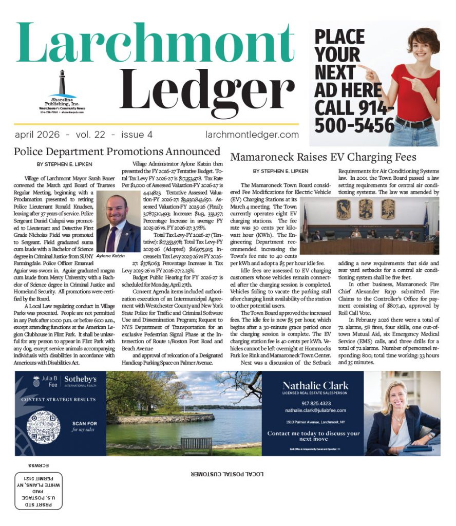 Police Department Promotions Announced Read Article Read this issue Mamaroneck Raises EV Charging Fees Read Article 2026 SPRING HOME & GARDEN IMPROVEMENT Read article