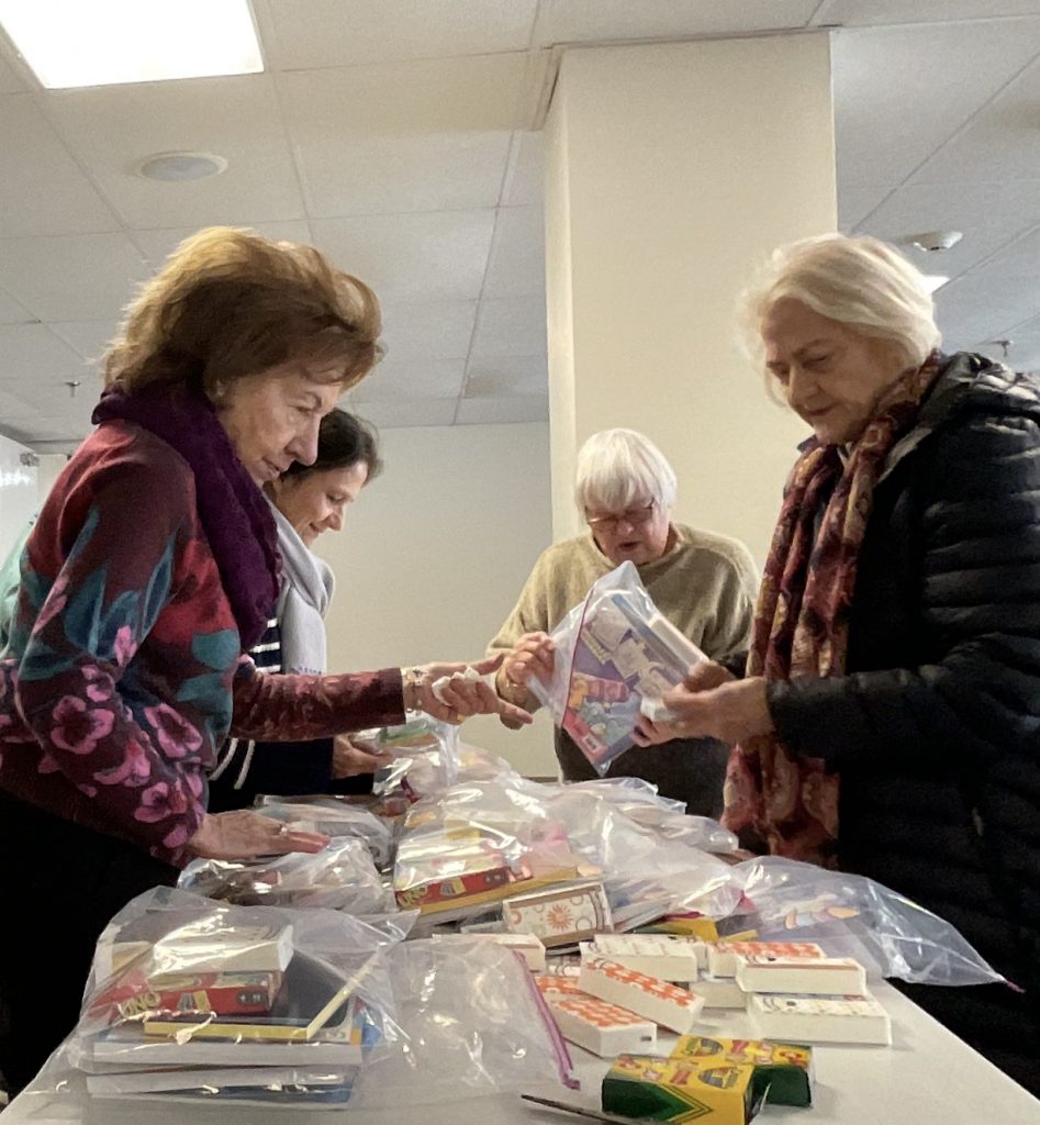 Philanthropy Committee members Mary Ann Mazza, Judy O’Gorman, Georgia Jesse, Zsuzsanna Baan-Jonas, Deidre Winters, and Carolyn Gallaher enjoyed assembling the Activity Kits.